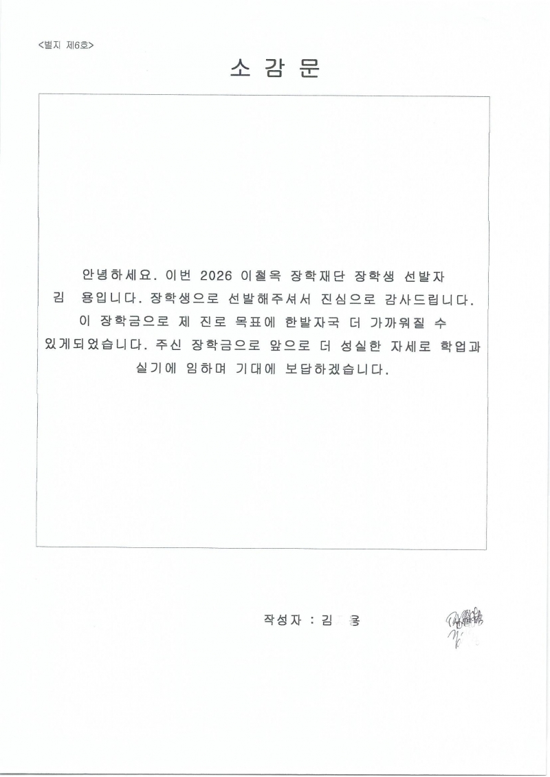 2026 »ó¹Ý±â ÀÌö¿ÁÀåÇÐÀç´Ü ÀåÇлý À¸·Î ¼±Á¤µÈ ÇлýµéÀÇ ¼Ò°¨¹® ÀÔ´Ï´Ù.